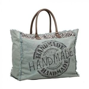 Myra-LAST 1! Handmade Stamp Print Weekender Canvas/Leather Ex-Large Tote bag-NWT
