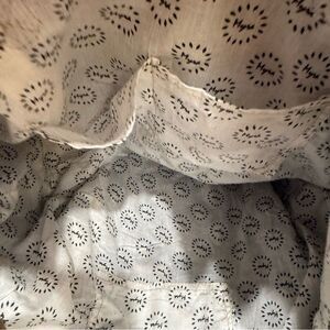 Stylish patchwork tote bag featuring a mix of brown, blue, and cream patterns. Includes a convenient shoulder strap for easy carrying.