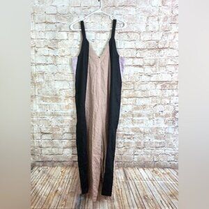 Myrah Penaloza Linen Playsuit in Clay/Black Stripe One Size / Playsuit comes in luxuriously soft stonewashed linen with a wide-body pantsuit that features a low v-neck front and back, side pockets, and wide-leg bottom and can be worn reversible for multiple looks. 100% linen