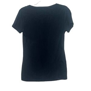 Cotton Poly Blend. Black with roses, wings and thorn cross design on front.