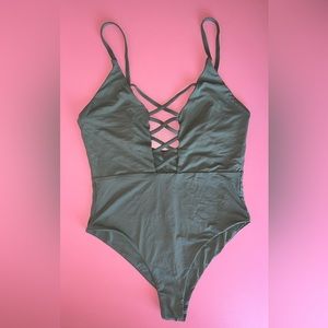 Myrtle Beach Olive Green Lace-Up One Piece Swimsuit