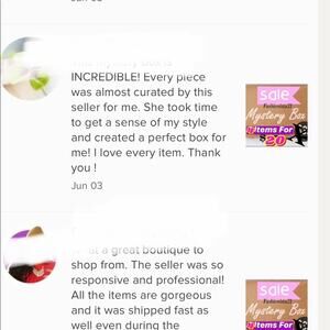 In this box Dresses tops pants. All different pieces great to own and resell.