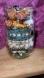 This glass jar filled with assorted jewelry. It features a variety of colors, including black, white, green, blue, and yellow. This collection adds a touch of style to any wardrobe.