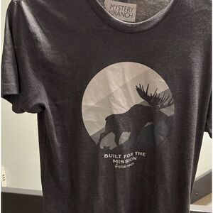 Explore the outdoors in style with this Mystery Ranch gray graphic t-shirt. Perfect for casual wear, this shirt combines comfort and a bold design.Length 27”, pit to pit 19”. From a smoke free home