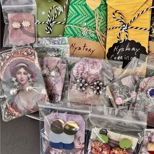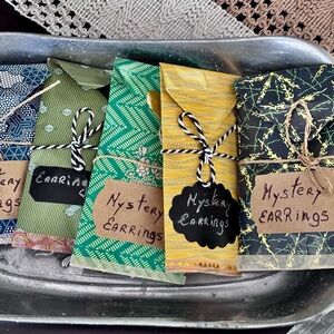 Indulge yourself or delight someone special with our Surprise Earrings Bag! Every bag is a fun surprise, filled with a special selection of earrings chosen just for you from our store. This bag is a great way to bring some fun to your day, whether you’re treating yourself or giving it to a friend! Every Surprise Bag comes with a random of 3 pairs of vintage stud earrings. You may discover unique designs. Each bag is carefully packed to create a fun unboxing experience.Reasons to Love It: "The ideal choice when you're unsure about which earrings to give as a gift!" A great and special gift for any event. "Every bag is a surprise, adding an exciting twist..
