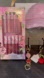 You’ll get Nicole Miller, 10 lip, gloss collection, acute pink hat with a bow, a brand new Crossbody bag on branded, a red, cherry bag, charm, and a bag extender that has red and pink strawberries. Everything is brand new.