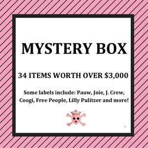 This a mystery box with over 34 women’s pieces all in size small. Keep them for yourself or resell them. All are in EUC. At $300 that’s only $8.82 per item. Still plenty of room to make a profit. Some brands include Joie, J. Crew, Free People and Lilly Pulitzer.