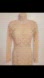 Mystic floral lace peek-a-boo bodycon mini dress in beige. Size X Small. Features an exposed zipper back, crew neckline, long sleeves, and partial knit lining. Pullover style.