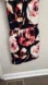 Chic sleeveless dress with bold floral print. Features red and cream flowers on a black base.