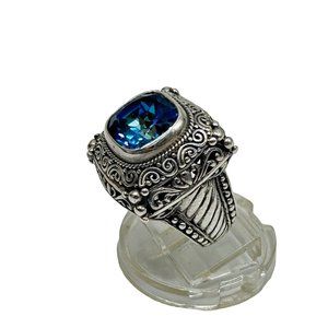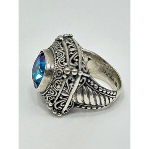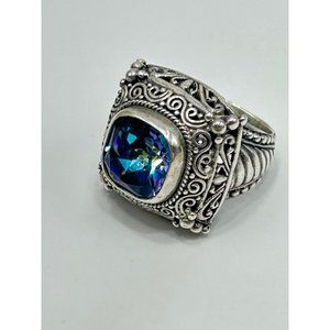 Mystic Blue Quartz Ring Size 5 Sterling Silver Ornate Raised Stone Silver 925