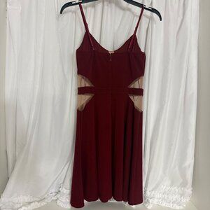 Mystic Burgundy Fit & Flare Dress Sheer Cutouts Adjustable Straps Small