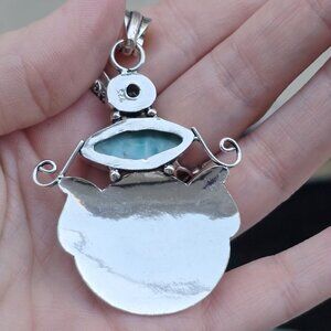 This exquisite pendant marries the allure of mystic topaz with the calming presence of larimar and the captivating hues of Swiss blue topaz.