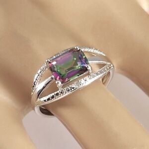 Rainbow mystic gemstone ring in sterling silver. Size 7-3/4