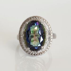 Stunning mystic gemstone ring in sterling silver. Size 8.