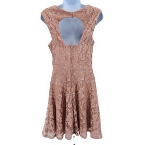 Mystic Pink Lace Sparkle Fit & Flare Mini Dress Womens Medium Sleeveless Cut Out