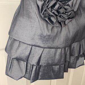 Mystic Sz Small Strapless Gun Metal Gray Metallic Flower Ruffled Mini Prom Dress