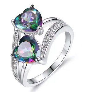 Mystic Topaz Double Heart Ring with crystal embellishments. Brand New. Gift-Boxed. Smoke free and pet free home.
