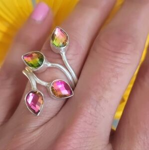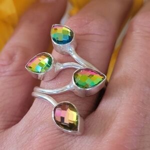 Sparkling multi color Mystic Topaz Gemstone wrap ring. Adjustable for any size. Stones set in stamped Sterling Silver 925.