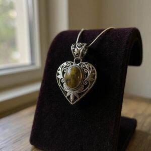 Delicately framed in a filigree heart design, this artisan-crafted pendant is paired with a matching sterling silver chain for effortless elegance. Whether it's a gift for someone you love or a treat for yourself, this piece adds a mystical charm to any outfit.