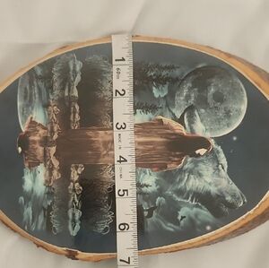 This captivating piece of art showcases a mystical landscape captured in a stunning photograph. The scene features a central figure in warm brown tones, surrounded by ethereal blue orbs against a dark backdrop. The reflective surface below adds a symmetrical elegance to the composition, making it a perfect addition to any art collection.