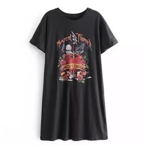 Metal rock style ‘Mystical Thunder Moon Child’ graphic printed short sleeve black t-shirt dress.