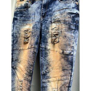 Mystiq Women's Blue/Orange Stretch Skinny Ripped Jeans Size 7 x 30" SKU 5125