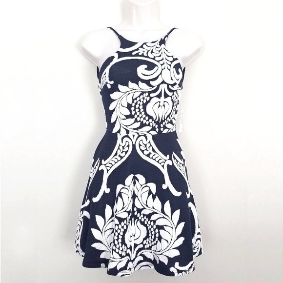 Mystique Boutique Navy and White Floral Dress by Sage Sz Sm Made in USA $35