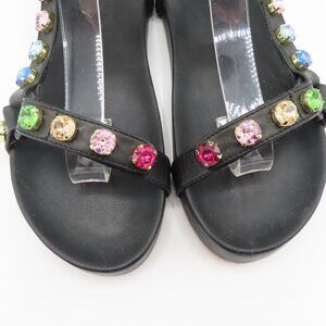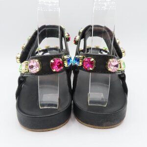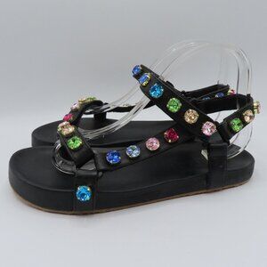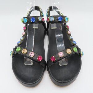 Mystique Stephanie Gottlieb Women 8 Rainbow Rhinestone Hook Loop Leather Sandals