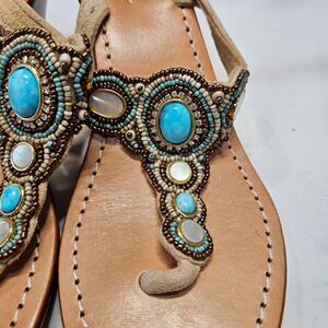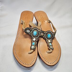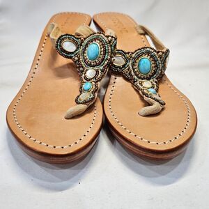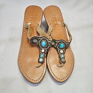 Mystique Womens Turquoise Mother of Pearl Leather Wedge Sandal Size 7 Resortwear