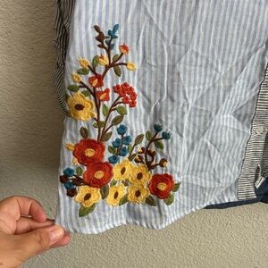 Mystree Blue Striped Floral Embroidered Button Down Shirt M