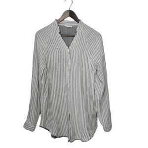 Mystree Blue Striped Gauzy Long Sleeve Button Down Top Frayed Hem Size Small