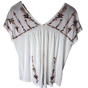 Mystree Boho Peasant Top Shirt Sz M Embroidered V Neck Babydoll Flowy Cottage