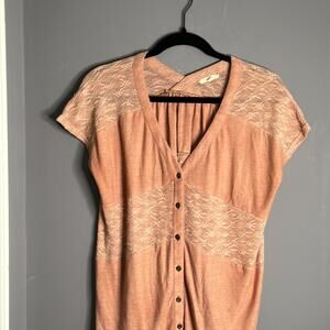 Mystree Buttoned Short Sleeve Top In Pink Size Small