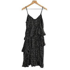 Mystree Class With Sass Tiered Midi Dress Black and White Polka Dot Sundress