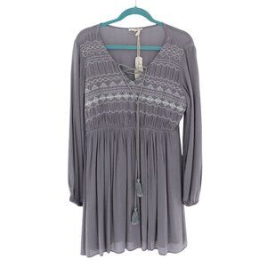 Mystree Embroidered Peasant Blouse Womens S Gray Boho Flowy Festival Hippie NWT