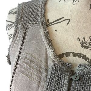 Mystree Grey Boho Sleeveless Patchwork Flowy Blouse M