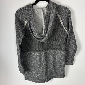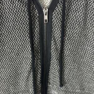 Gently Used Mystree Full Zip Hoodie Sweatshirt. This is a women's small. Black and gray in various designs throughout. Exposed seams with some intentional distressing. Unique look too it! Front pockets. Light and breathable. 60% polyester, 40% cotton.