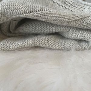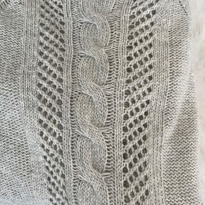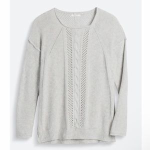 Mystree Light Gray/Off White Cashmere Blend Pullover Sweater, Size Medium