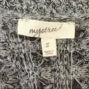 Cute black and white long open lightweight cardigan with wide shawl collar. The back has a gathered fan like detail. Fabric is 70% acrylic, 20% cotton and 10% wool. Measurements: length 37" and sleeve length 23".