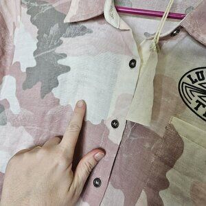 Mystree NWT Womens button Down Camo Pink Top Tourist Luckenbach Texas Sz M