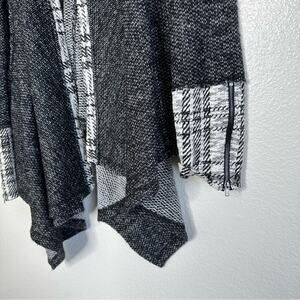 Mystree Open Front Waterfall Cardigan Medium Zipper details on sleeves Gray and white