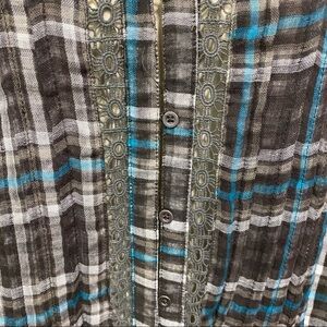 Mystree Womens Small Oversized Brown Green Plaid Button Down Tunic Top in excellent condition. No stains, tears or rips.