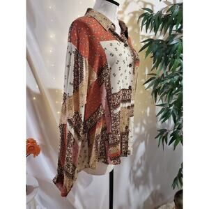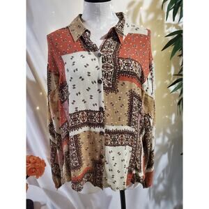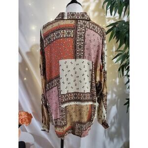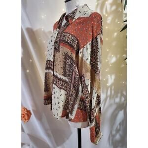 Mystree Patchwork Paisley Boho Button Long Sleeve Shirt Size L Hippie Country