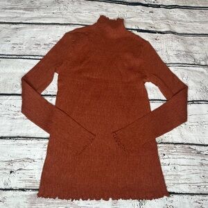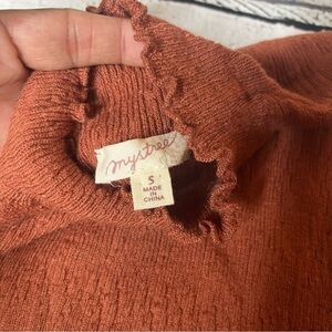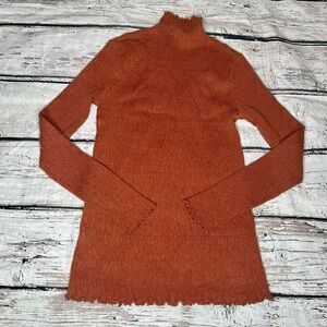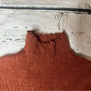 Mystree Rust Lettuce Leaf Mock Neck Sweater Size S