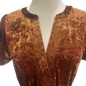 Elevate your wardrobe with this stunning crushed velvet midi dress by Mystree. Designed in a rich rust brown shade, this dress exudes elegance and comfort. The flattering V-neckline and short flutter sleeves give it a sophisticated yet relaxed vibe. The elastic waistband cinches at the waist, while the ruffled hem adds a touch of femininity. Perfect for autumn and winter occasions, this dress can be dressed up with heels or worn casually with boots. Made with soft velvet fabric, this dress is ideal for cozy evenings or stylish day outings.