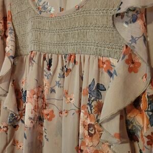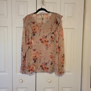 Mystree, S | Floral Ruffle Chiffon Boho Chic Blouse NWT