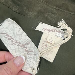 Mystree Skirt size Large Olive Green Satin Midi A Line Modest Church Casual Slim