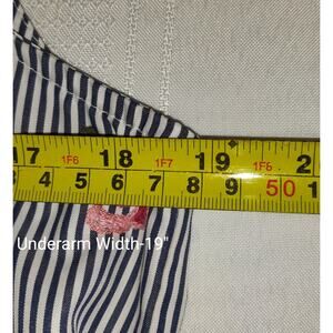 Mystree Top Shirt Womens Small Blue White Pinstripe Embroidered Flowers Nautical