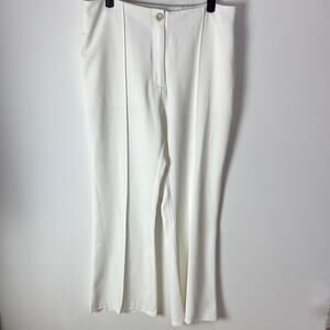 Gently Used Mystree Pants. This is a women’s large. Pleats down the legs. Side pockets. Faux back pockets. Wide leg flowy fit. 100% polyester.