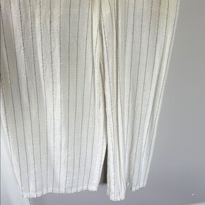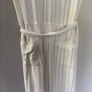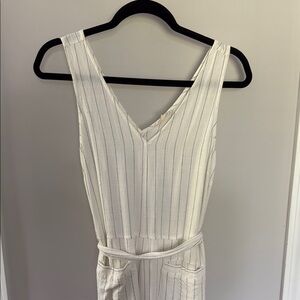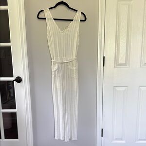 Stylish white jumpsuit with vertical stripes. Sleeveless design with a flattering fit.